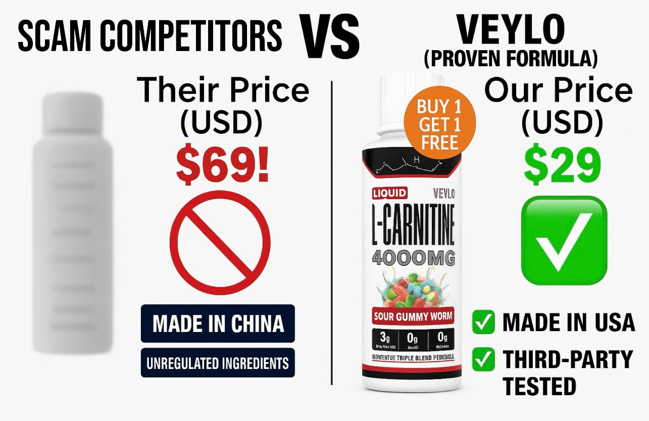 Most fat burners are filled with fake ingredients and false promises. VEYLO is one of the only brands selling real, clinical-strength L-Carnitine 3000—made in the USA and FDA-approved. With our Buy 1 Get 1 Free deal, free shipping, and 12-week fat-loss program, you finally get results that las